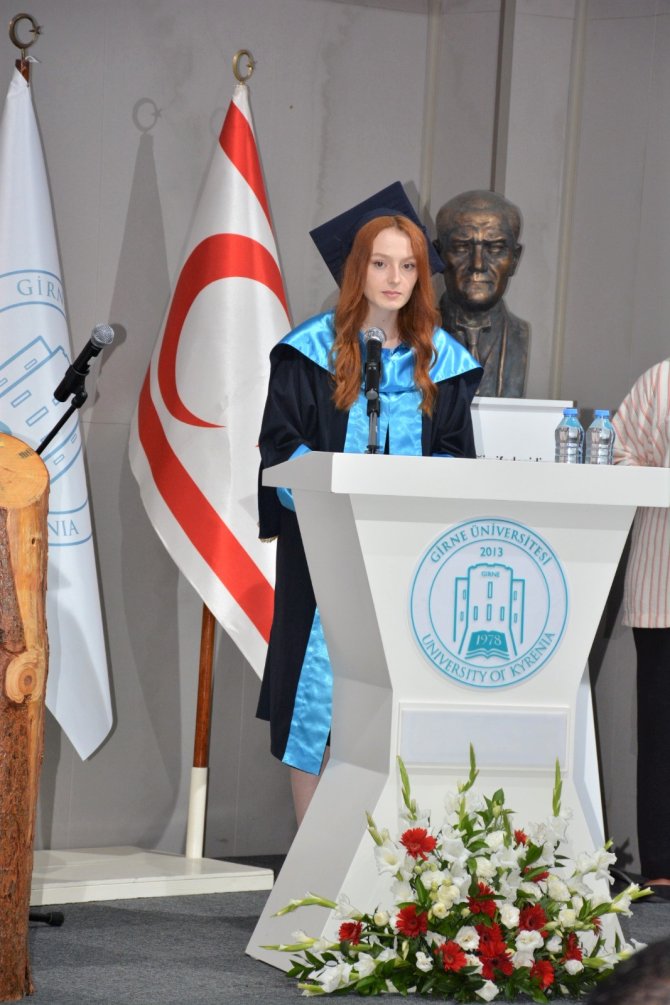Tören, saygı duruşu ve İstiklal Marşı’nın ardından müzik dinletisi ile başladı. Törenin açılış konuşmaları Dr. Suat Günsel Diş Hastanesi Başhekimi ve Girne Üniversitesi Diş Hekimliği Fakültesi Dekanı Prof. Dr. Serap Çetiner ve Girne Üniversitesi Rektörü Prof. Dr. İlkay Salihoğlu tarafından yapılırken fakülte birincisi Tuba Ökten de mezunlar adına katılımcılara seslendi.