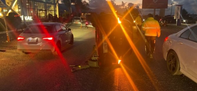 Girne'de alkollü sürücü aracıyla iki araca çarptıktan sonra devrildi, kazada yaralanan olmadı.