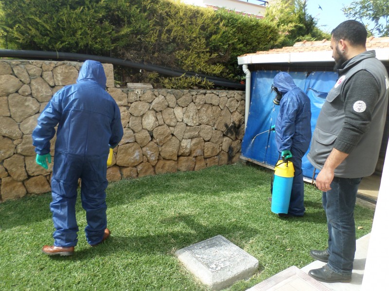 Girne Belediyesi Sağlık Şubesi, ilaçlama ekipleriyle belediye hudutları dahilindeki rutin olarak gerçekleştirdiği ilaçlama çalışmalarını artırarak devam ediyor.