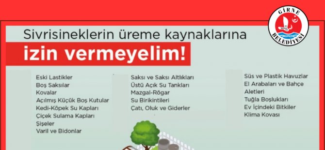 Girne Belediyesi Sağlık Şubesi konu ile ilgili bir açıklama gerçekleştirdi. Yapılan açıklamada program dahilinde devam eden ilaçlamaya ek olarak, halka da mücadelede entegre bir görev düştüğüne yer verildi. Bu bağlamda, bazı önemli bilgilere yer verildi.