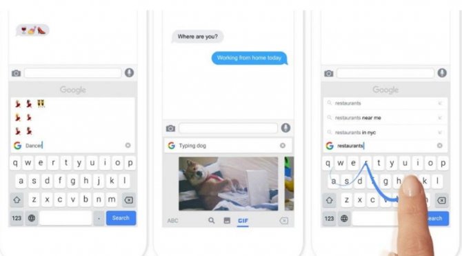Google’ın, Gboard olarak adlandırdığı klavye, normal bir klavye gibi çalışıyor ancal sol sol üstteki küçük “G” simgesi kullanıcıları özel arama yapmaya yönlendiriyor. Arama işlevi sayesinde klavyeyi terk etmeden konum, GIF, haber, uçuş saati gibi bilgileri arayıp arkadaşınızla paylaşabiliyorsunuz. Böylece Safari ile mesajlaşma uygulamanız arasında gidip gelmekle zaman kaybetmemiş oluyorsunuz. Gboard, herhangi bir iOS uygulamasıyla çalışabiliyor.