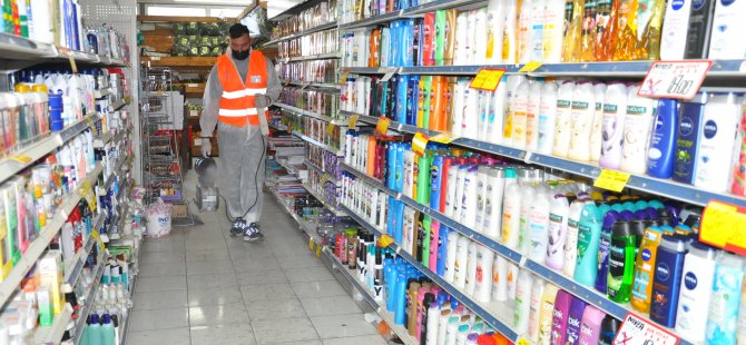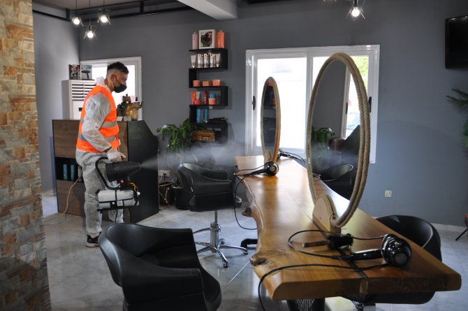 Belediye Sağlık ekipleri tarafından bugün market, restoran, berber ve kuaför gibi işletmeler ilaçlanarak dezenfekte edildi.
