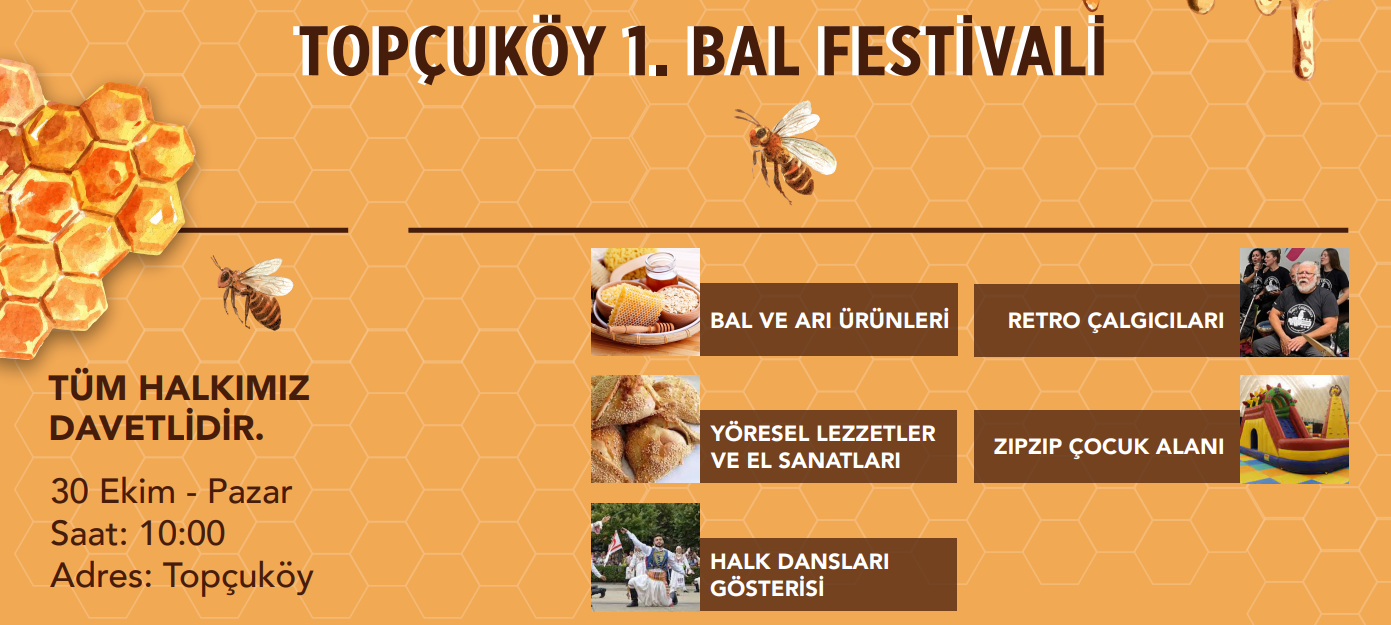 Hepsi İskele Belediyesi'nin bu yıl ilkini düzenleyeceği Topçuköy 1.Bal Festivali'nde, 30 Ekim Pazar, Topçuköy'de