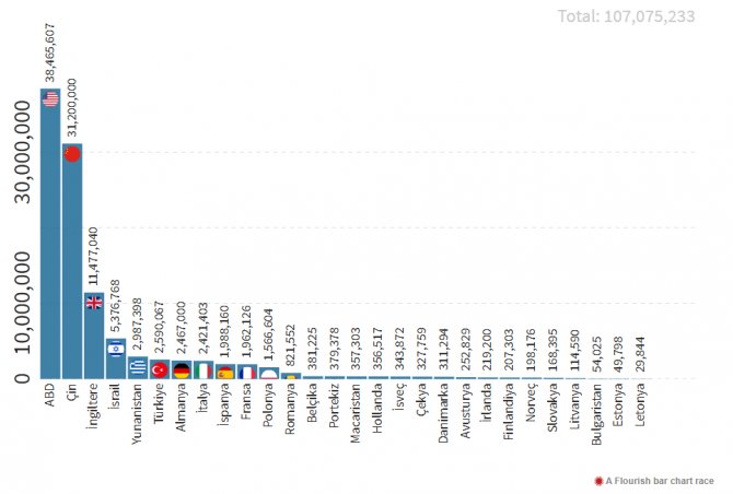 ABD, Çin ve İngiltere aşılama konusunda en hızlı davranan ülkeler konumunda. Ülke nufüsunda göre de İsrail en çok aşı yapan ülke konumunda. İsrail'de her 100 kişiden yaklaşık 60 kişi en az bir doz Covid-19 aşısı yaptırdı.