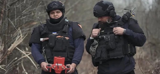 Ukrayna Acil Durumlar Servisi’ne bağlı piroteknisyenler, ülkenin güneyindeki Herson kentinde mayın temizleme çalışmalarını sürdürüyor.