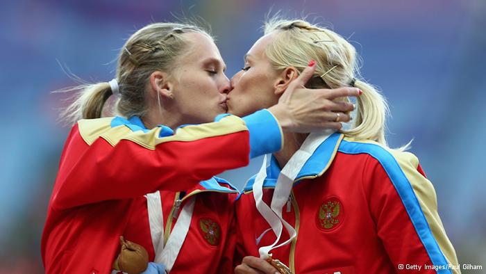 4 x 400 metre bayrak yarışında altın madalyalarını almak üzere podyuma çıkan Tatyana Firova ve Şeniya Rişova, ülkelerinde bir süre önce yürürlüğe giren ve eşcinsellik propagandasını yasaklayan yeni düzenlemeyi öpüşerek protesto ettiler.