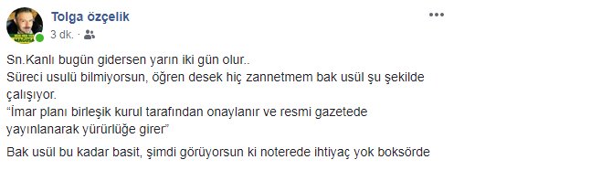Gazimağusa Belediye Meclis üyesi Tolga Özçelik sosyal medya hesabından Gazimağusa, İskele , Yeniboğaziçi İmar planı ile ilgili açıklama yaptı.