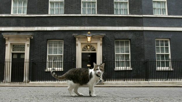 Başbakanlıkta 'Larry' görevliİngiltere hükümetinde başbakanlık binası 'Downing Caddesi 10 Numara'da da Larry adlı kedi görevli.Larry de Palmerston gibi Battersea barınağından alındı ve göreve 2011 yılında başladı.İngiltere Başbakanı David Cameron de bir radyo röportajında Larry'nin 'Avcı Kedi' olarak çok çalıştığını ve '10 Numara'daki kemirgen istilasıyla iyi mücadele ettiğini söyledi.Cameron ayrıca Larry'nin genellikle erkekleri sevmediğini ama ABD Başkanı Barack Obama'yle iyi anlaştığını belirtti.Larry'nin 'resmi olmayan' bir de Twitter hesabı ve 47.500 de takipçisi var.