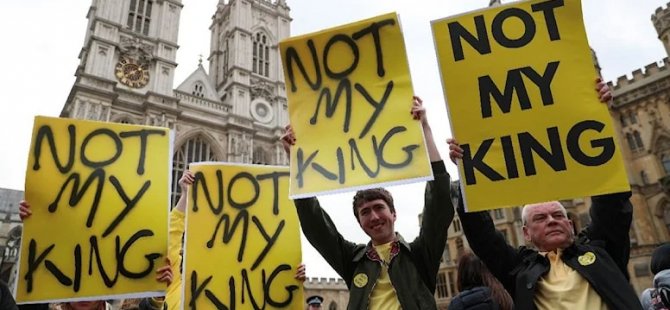 “Republic (Cumhuriyet)” adlı monarşi karşıtı kampanya grubunun düzenlediği gösteriye katılanlar, ellerinde “Kraliyet Ailesi ırkçı”, “Kraliyet’e son”, “Kraliyet Ailesi’ni kovun” yazılı pankartlar taşıdı ve “Benim Kralım değil” sloganları attı.