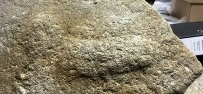 Taşın kırık halde bulunduğu ve arkeologlar tarafından birleştirilip incelendikten sonra üzerinde işlenmiş bir penis motifi olduğu fark edildi.