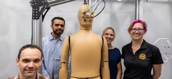 Termal manken, karmaşık ortamlardan gelen ısıya karşı insan tepkilerini simüle ederken ve kaydederken, vücudunda soğuk suyu dolaştırmak için özel olarak oluşturulmuş dahili soğutma kanallarıyla terleyebiliyor.