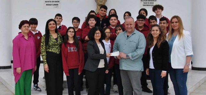 İrsen Küçük Ortaokulu Müdürü Bilge Haşimoğulları, bağış çekini, okulun “İyilik Kulübü” öğrencileriyle birlikte KTDP adına Kıbrıs Türk Sanayi Odası Basın ve İletişim Sorumlusu Hüseyin Ezgin’e takdim etti.