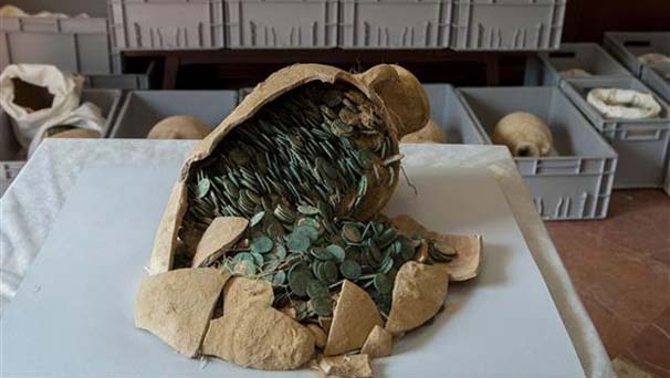 İşçiler su borularının bakımını yaparken, Roma döneminden kalma 600 kilogram sikke buldular