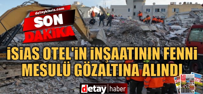 Soruşturma kapsamında depremlerde yıkılan, aralarında Kuzey Kıbrıs Türk Cumhuriyeti'nden gelen sporcuların da bulunduğu 65 kişinin yaşamını yitirdiği İsias Otel ile ilgili başlatılan soruşturmada İl Jandarma Komutanlığı ekipleri, otelin fenni mesulü inşaat mühendisi olan Halil Bağcı'yı kent merkezinde gözaltına aldı.
