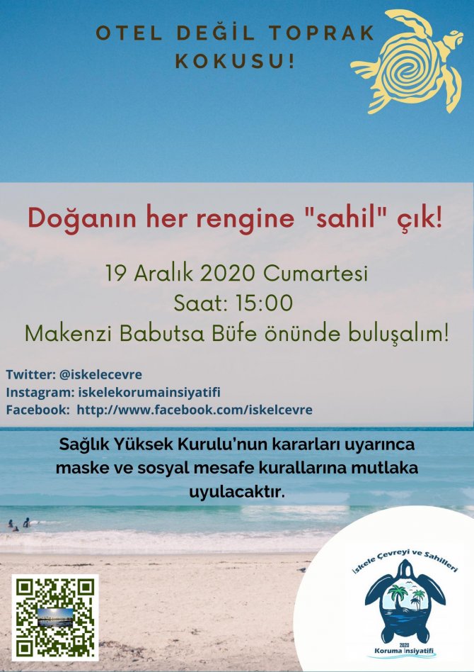 Hakımıza çevreye, sahile, ve doğal alanlarına sahip çıkmak için 19 Aralık Cumartesi günü saat 15’de İskele Long Beach önünde Babutsa Büfe’de buluşma çağrısı yapıyoruz.