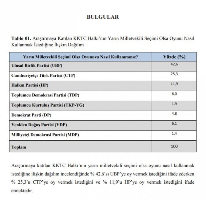Gezici Araştırma YDP’nin oy oranlarını tek bilen aynı zamanda tüm anket firmaları % 1 dahi oy alamaz derken Gezici Araştırma YDP’nin % 6’nın üzerinde oy alacağını söyleyen tek kurumdur. İlk defa milletvekili seçilen Sayın Erhan Arıklı’nın uzun yıllardır politika ile ilgilenmesi, daha önce de Milliyetçi Adalet Partisi ve Demokrat Parti gibi partilerde görevler üstlenmesi dolayısıyla ismi önemli bir seçmen kitlesi tarafından biliniyor. Hitap ettiği kesim ise genellikle Türkiye’den 1974 sonrası Kuzey Kıbrıs’a yerleşen insanlardır. Meclis ve televizyon programlarındaki performansı beğenilse de Cumhurbaşkanlığı seçimi için güçlü bir aday olduğu söylenemez. Ama yapacağı yönlendirmeler, partisi ile birlikte adaylardan biri lehine koyacağı ağırlık seçimin kaderine önemli bir oranda etki yapacaktır.