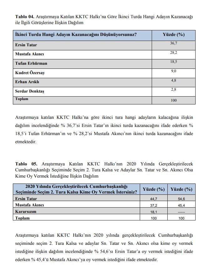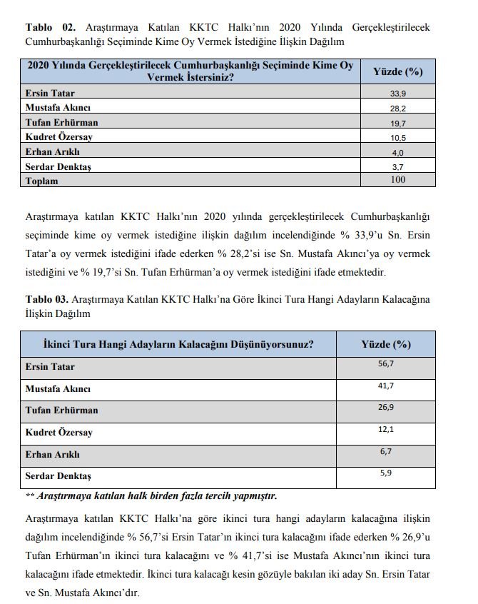 Sayın Akıncı’nın da toplumda temiz bir siyaset adamı olarak algısı yüksek görünmektedir. Uzun bir süre halkın içine girmemiş olması ancak son zamanlarda bunu yapıyor olması olumlu karşılanıyor. Daha fazla halkla iç içe olması ise talep ediliyor. Sayın Akıncı yine de yıllardır siyaset sahnesinde olması, uzun yıllardır sol kesimde ciddi bir prestije sahip olması ve hala federal çözüm için uğraşacağı konusunda özellikle federal çözümü isteyen halk kesimi arasında büyük bir güvene mazhar olması dolayısı ile önemli oy potansiyeline ulaşabilecek bir aday durumundadır. Ancak, oylarında geçen Cumhurbaşkanlığı seçimine göre önemli bir düşüş olduğunu da geçen defa Sayın Akıncı’nın kazanacağını söyleyen tek anket şirketinin sahibi olarak ortaya koymak durumundayım. Bunun başlıca sebebi hiç kuşkusuz ki Kıbrıs konusuna kısa sürede çözüm bulacağı vaadiyle göreve gelmesi ama beş yıla yakın bir süredir bu konuda bir sonuç alamamasıdır. Her ne kadar da Sayın Akıncı görüşme sürecini canlandırma çabası içinde görünse de, halkın çok büyük bir kesimi Rum tarafının temel konularda tutum değiştireceğine ve Kıbrıs’ta bir federal anlaşma olacağına inanmıyor. Bu, Sayın Akıncı için ciddi bir eksi puan oluşturuyor. Biz sürekli araştırma yapıyoruz ve gözlemlediğimiz bir diğer husus da Sayın Akıncı’nın 2017 yılı Haziran ayı sonu, Temmuz ayı başında İsviçre’nin Crans Montana kasabasında yapılan Kıbrıs görüşmelerinin başarısızlıkla çökmesinden bu yana oylarının düşüşe geçtiğidir. Sayın Akıncı’nın o çöküş sürecinden sonra “ bizim kuşağın artık Kıbrıs’ta bir federal çözüm bulma olanağı kalmamıştır “ mealinde açıklamalar yapması oy kaybetmesinde hayli etkili olmuştur kanaatindeyim. Sayın Akıncı’nın geçen seçime göre en önemli dezavantajı ise özellikle UBP ve sağ partilerden geçen defa belirli nedenlerle aldığı oyların çok büyük bir kesimini bu seçimde alamayacak olmasıdır. Ancak Sayın Akıncı, hala CTP’den ve kendisini solcu olarak tanımlayan kesimlerden destek aldığı görülüyor. Sayın Akıncı’nın bir başka önemli dezavantajı ise Türkiye ile olan ilişkilerde özellikle son zamanlarda yaşanan gerilimdir. Halkın önemli bir oranı Sayın Akıncı’nın Barış Pınarı harekatı ile ilgili çok geç açıklama yapmasını ve harekatı farklı ifadelerle tanımlamasını doğru bulmadı. Halk Sayın Akıncı’ya yönelik Türkiye’deki bazı kişilerin çirkin ifadeler kullanmasına da asla onay vermiyor, bunlara da tepki gösteriyor ama bütün bunlara Sayın Akıncı’nın bir hatasının neden olduğu yönünde yerleşmiş bir kanaat vardır. 8