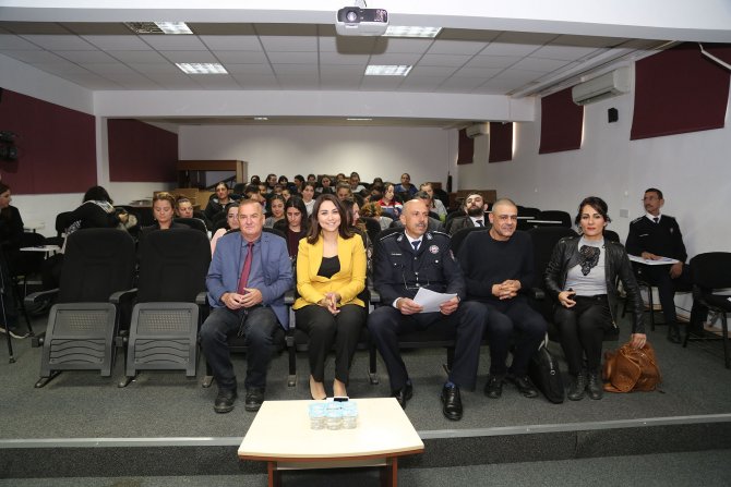 Ardından Lefkoşa Türk Belediyesi Toplumsal Cinsiyet Birimi’nden Bilgen Anayasa ve Gizem Ercantan “Kadına Yönelik Şiddet ve Sığınma Evi” başlıklı konuşma yaptı ve “Fetine’yi Ararken” isimli belgesel film gösterildi.