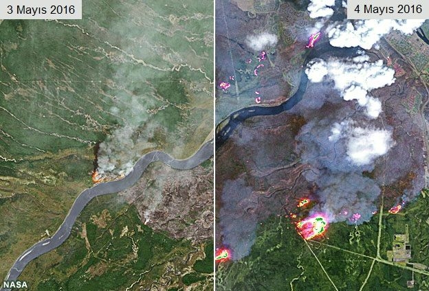 Kanada'da günlerdir devam eden ve bir türlü kontrol altına alınamayarak yayılan yangın nedeniyle Fort McMurray kentindeki evlerin 5'te 1'inin yandığı ve içinde oturulamaz hale geldiği belirtildi.