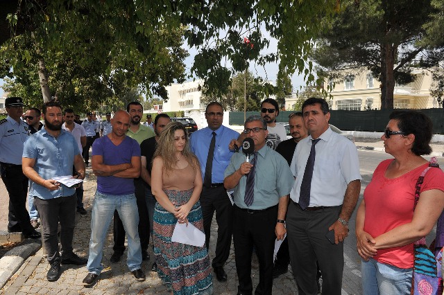 Dün Meclis önüne gelen KTÖS yetkilileri ve davada yargılanan 8 kişi, hazırladıkları ortak basın bildirisini okudu.