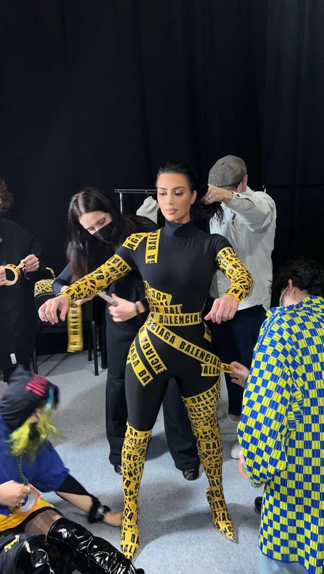 Paris Moda Haftası'na katılan Kim Kardashian kendini koli bandıyla bantlattı