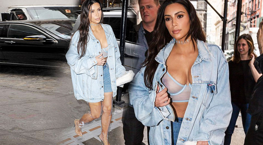 Modanın sınırlarını her zaman zorlamayı seven Kim Kardashian, yine oldukça iddialı görünümüyle New York sokaklarında görüntülendi. Salı sabahı görüntülenen 35 yaşındaki reality yıldızı Kim Kardashian, jean şortunun altına kalçasına kadar uzanan şeffaf plastik bir çizme giydi.