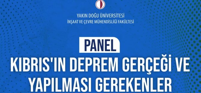 8 Mart’ta Yakın Doğu Üniversitesi’nde düzenlenecek olan “Kıbrıs’ın Deprem Gerçeği ve Yapılması Gerekenler” panelinde akademisyenler, oda başkanları ve deprem uzmanları KKTC’nin depremle mücadelesinde yol haritası oluşturacak. Basına ve halka açık olarak gerçekleştirilecek olan panel, Yakın Doğu Üniversitesi’nin resmi YouTube hesabından da canlı olarak yayınlanacak.
