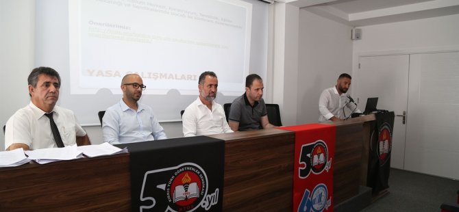 “Yasa çalışmaları”, “İstihdam”, “İki Toplumlu İlişkiler”, “Okul İçi Düzenlemeler”,” Altyapı”, “Ekonomik ve Sosyal Haklar”, “Eğitim İstatistikleri” olmak üzere 7 ana başlık ve 40 alt başlıkta sendikanın önerilerini içeren basın toplantısı Kıbrıs Türk Gazeteciler Birliği Lokali Konferans Salonu’nda bugün yapıldı. Eğitim Sekreteri Burak Maviş, eğitimle ilgili veriler de paylaşarak “Eğitim programlarımız ve yasalarımız ellenmeli” dedi.