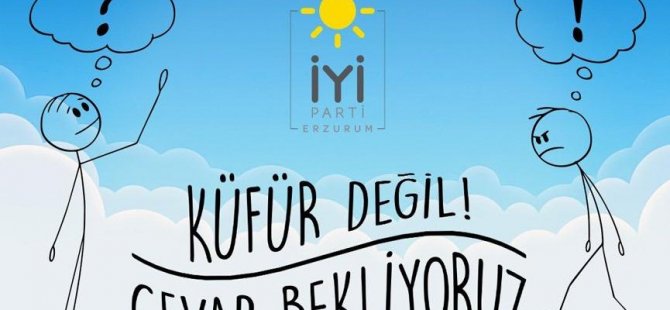 İYİ Parti Erzurum teşkilatları ‘Küfür değil, cevap bekliyoruz’ sloganıyla kampanya başlattı. Sosyal medya üzerinden İYİ Parti’nin resmi hesaplarından başlatılan kampanyada, AKP’li Büyükşehir Belediyesi’ne sorular yöneltildi.