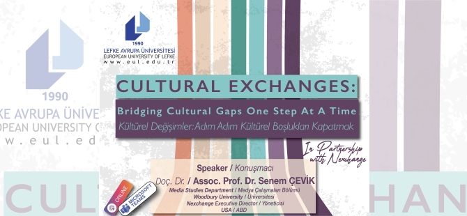 Lefke Avrupa Üniversitesi (LAÜ) İletişim Bilimleri Fakültesi’nin, Nexchange iş birliği ile yapılan online seminer dizisinin ilkinde; Nexchange Yöneticisi ve Woodbury Üniversitesi Medya Çalışmaları programı Öğretim Üyesi Doç. Dr. B. Senem Çevik’in “Kültürel Değişimler: Adım adım kültürel boşlukları kapatmak – Bridging cultural gaps one step at a time” başlıklı konuşması yer aldı.