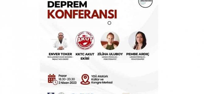Konferansın konuşmacıları KTMMOB İnşaat Mühendisleri Odası Laboratuvarı Müdürü İnşaat Mühendisi Enver Toker, KKTC AKUT Derneği ekibi ile uzman psikolog ve psikoterapistler Ziliha Uluboy ve Pembe Ardıç olacak.
