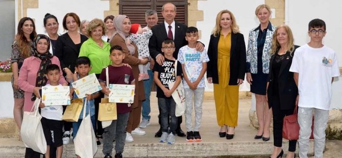 Törende Lefkoşa Surlariçi bölgesinde yaşayan 10 çocuğa sertifikaları Cumhurbaşkanı Ersin Tatar ve eşi Sibel Tatar tarafından takdim edildi.