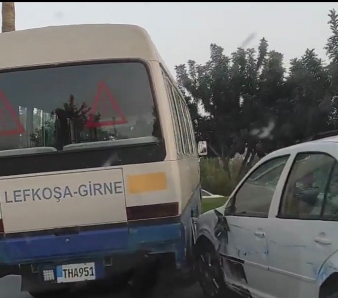 Gönyeli çemberinden Lefkoşa Burhan Nalbantoğlu Devlet Hastanesi’ne doğru seyir halinde olan yolcu minibüsü ile salon araç çarpıştı.