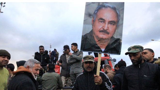 Hafter, dün geç saatlerde televizyondan yayınlanan açıklamasında, "kadın-erkek, sivil-asker tüm Libyalılara vatanlarını ve onurlarını savunmak için" Türkiye'ye karşı silahlanma çağrısı yaptı.