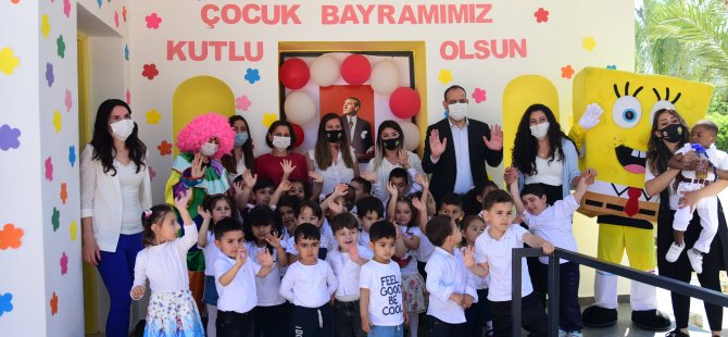 Lefkoşa Türk Belediyesi(LTB) El Ele Çocuk Merkezi’nde kreş hizmeti alan çocuklar 23 Nisan Ulusal Egemenlik ve Çocuk Bayramı’nı şarkılarla ve oyunlarla kutladı. Çocukların 23 Nisan şarkısını hep beraber söylediği, palyaço ve arkadaşı Sünger Bob’un katılımıyla farklı oyunlarla eğlendiği,yüz boyama ekibi tarafından çocukların yüzlerinin boyandığı kutlamaya LTB Başkanı Mehmet Harmancı da katılarak miniklerin neşesine ortak oldu. Ülkedeki pandemi koşullarından dolayı ailelerin yer almadığı kutlamada her yeri balonlarla süslenen, farklı oyun aletleri kurulan ve müzikler eşliğinde çocukların oyunlar oynadığı LTB El Ele Çocuk Merkezi adeta bir festival alanını andırdı. Gloria Jean’s Coffees, LTB Meclis üyesi Umut Öksüz ve Hasan Vatansever’in katkı koyduğu etkinlikte çocuklara kek ve dondurma ikramı da yapıldı. LTB Başkanı Mehmet Harmancı çocuklara Akıle Ruh Ekizoğlu’nun kaleme aldığı TUFAD tarafından yayınlanan Garaböcü isimli Kıbrıs Halk Masalı kitabını da hediye etti.
