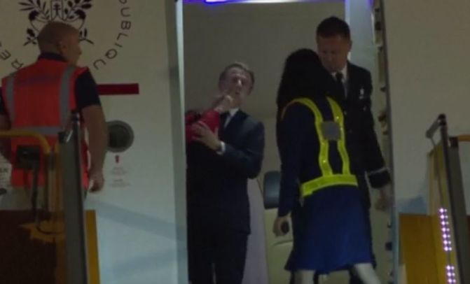 Associated Press'in kamerasına yansıyan görüntülerde, Brigitte Macron'un eşine makam uçağının kapısında tokat attığı görülüyordu. Kameraları fark eden Macron kendisini aşağıda bekleyen heyete selam verirken, ikili uçaktan beraber inerken, Brigitte Macron'un Emmanuel Macron'un koluna girmediği görülmüştü.
