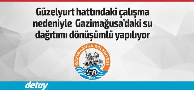 Güzelyurt’tan Gazimağusa’ya gelen hatta patlak tamiratı yapılması nedeniyle Gazimağusa’ya su verilemiyor. Güzelyurt’tan gelen suyun tamamen kesilmesi nedeniyle Belediyeye ait Deniz Suyu Arıtma Tesisi’nden sağlanan suyla bölgelere dönüşümlü su veriliyor. KKTC Su İşleri Dairesi’nin kontrolündeki ana hattın Güzelyurt Lefkoşa arasındaki 100 metrelik kısmında patlak tamiri çalışmalarının 2 gün sürebileceği belirtildi. Patlak tamiratlarının yanı sıra, Lefkoşa Gazimağusa arasındaki hattın 300 metrelik kısmının kötü durumda olduğu için değiştirilmesi konusunda, Su İşleri Dairesi’nin bakanlık nezdinde girişim başlattığı da açıklandı.