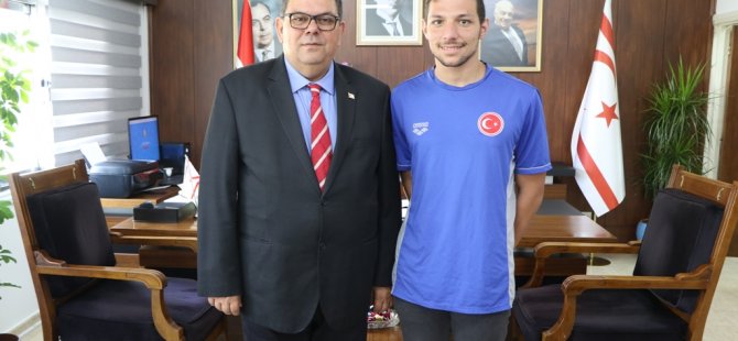 Maliye Bakanı Dr. Özdemir Berova, uluslararası yarışlarda başarılar elde eden Kıbrıslı Türk milli yüzücü Doğukan Ulaç’ı kabul etti.