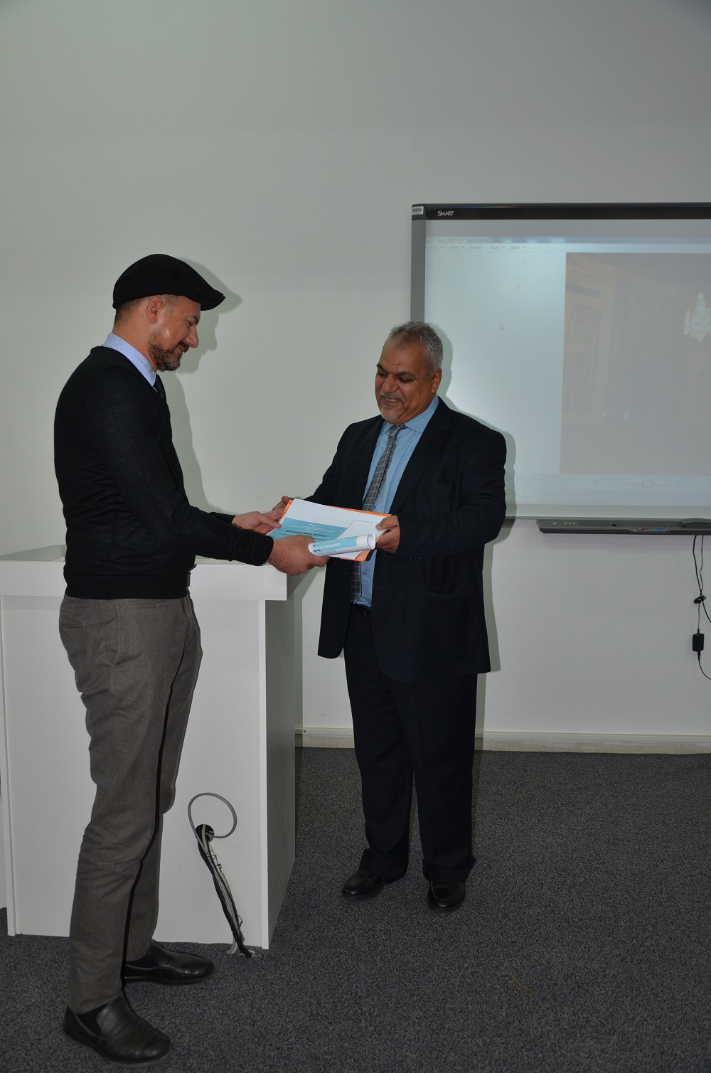 DAÜ, Mimarlık Bölümü ve INTBAU Kıbrıs Başkanı Prof. Dr. Özgür Dinçyürek’in yapmış olduğu kapanış konuşmasının ardından Arfaei’ye katılımından dolayı sertifika ve anı olarak etkinliğin posteri takdim edildi.