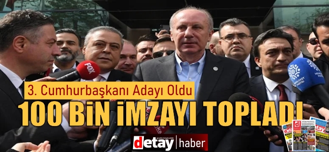 Memleket Partisi Genel Başkanı Muharrem İnce, 100 bin imzayı 4’üncü günde aşarak 3’üncü Cumhurbaşkanı adayı oldu.