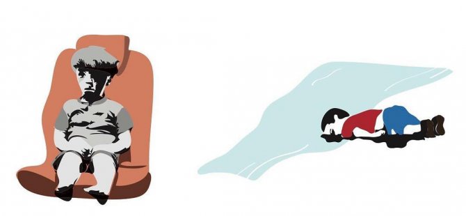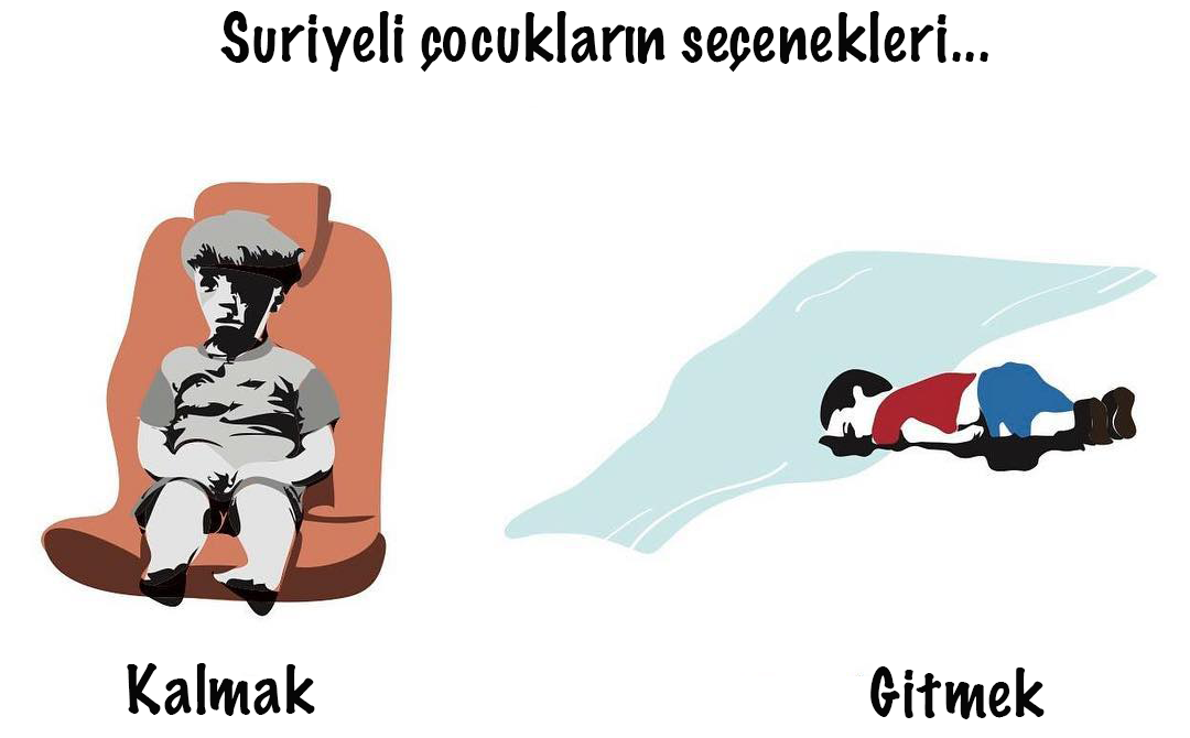 Sanatçı Khalid Albaih, 5 yaşındaki Ümran ile Eylül 2015'te Suriye'deki iç savaştan kaçıp Ege Denizi'ni geçmeye çalışırken boğulan ve cansız bedeni kıyıya vuran 3 yaşındaki Aylan bebeği birlikte çizdi.