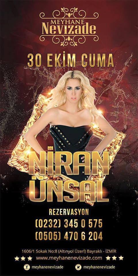 Niran Ünsal, 30 Ekim’de İzmir’deki bir meyhanede sahne alacak. Etkinliğin afişi, mekanın facebook’taki sayfasında paylaşıldı. Ünsal’ın fotoğrafının da yer aldığı afiş, sosyal medyayı salladı.