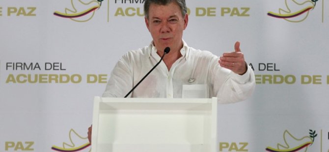 Kolombiya Devlet Başkanı Juan Manuel Santos, ülkesinde 52 yıldır süren savaşı sonlandırmak için FARC'la barış anlaşması imzalamış ancak bu anlaşma referandumda kabul edilmemişti.
