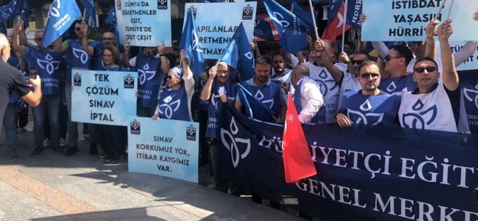 Hürriyetçi Eğitim Sen ise öğretmenlik meslek kanununu protesto etmek üzere yaptığı basın açıklamasının ardından Milli Eğitim Bakanlığına il temsilcilerine giderek dilekçe teslim etti. Hürriyetçi Eğitim Sen Genel Başkanı Levent Kuruoğlu, “Tüm meslektaşlarımız adına meydanlara indik. Eylem kararı alıp vazgeçmedik. Sınav iptal edilene kadar mücadeleye devam edeceğiz. Bağımsız sendikacılığın ve emek mücadelesinin adresi olacağız. Ant olsun…” ifadelerini kullandı.