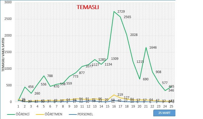 25 Mart 2022 Okul Koronavirüs Tablosu