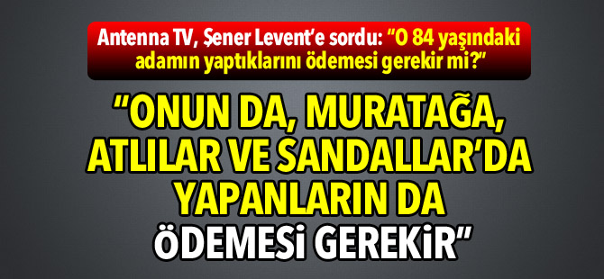 Levent, “O 84 yaşındaki adamın yaptıklarını ödemesi gerekir mi?” sorusuna karşılık “Onun da ödemesi gerekir mutlaka, Muratağa, Atlılar ve Sandallar'da yapanların da ödemesi gerekir.” dedi.