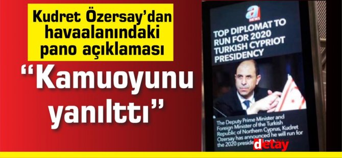 Başbakan Yardımcısı ve Dışişleri Bakanı Kudret Özersay, sosyal medyadan yaptığı paylaşım ile, İstanbul Havalimanında bir haber panosunda aday olduğuna dair dönen haberin reklam olarak gösterilmesinin kamuoyunu yanılttığını vurguladı.