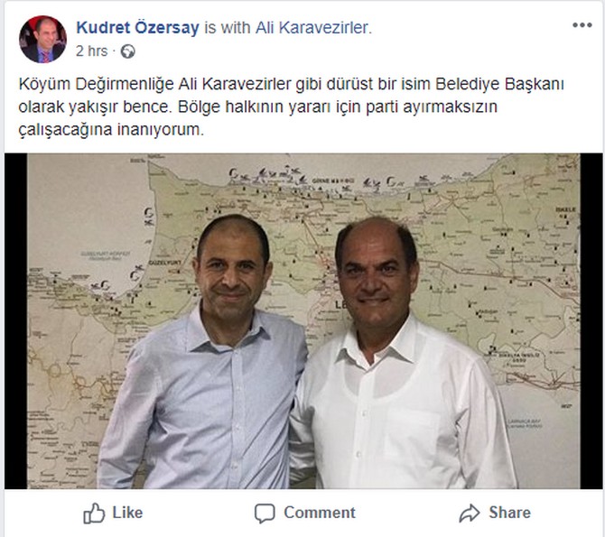 Özersay Facebook'ta Karavezirler'le bir foroğrafını paylaştı ve desteğini açıkladı.