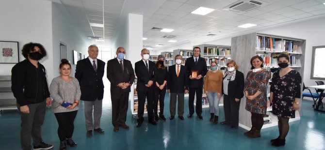 Rektör yardımcıları, Genel Sekreter, akademisyenler ve kütüphane çalışanlarının katıldığı törende Girne Üniversitesi Rektörü Prof. Dr. İlkay Salihoğlu kitap ve edebiyat tutkunu olarak nitelediği Prof. Dr. Şevket Öznur’a geçen hafta açılan Girne Üniversitesi Büyük Kütüphaneye yaptığı anlamlı bağıştan dolayı teşekkürlerini sundu.