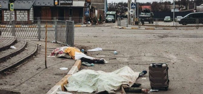 Önceki gün Irpin’de oluşturulan “sahte ateşkes” ile birlikte yaşadıkları şehri terk etmek isteyen üç kişi ellerinde bavullarla kaçarken Rus hava saldırısı sonucu yaşamını yitirmişti. Bu fotoğraf uluslararası kamuoyunda gündem olurken, Rusya’nın ateşkesi ihlal etmesinin sonucunda masum sivillerin ölmesi üzerine tepkiler oluşmuştu.